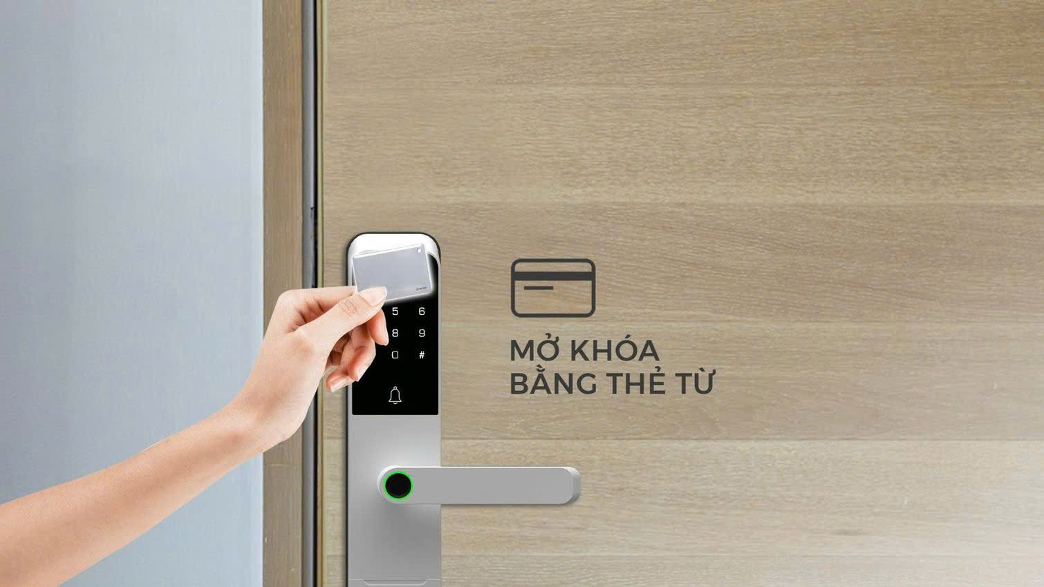 Tích hợp mở khoá đa dạng: mật khẩu, vân tay, thẻ từ và liên kết với app điện thoại,..