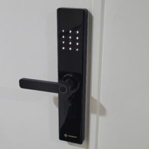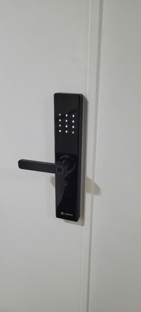 Ảnh thực tế khóa cửa vân tay Hubert CG59 Rough Black khi lên cửa